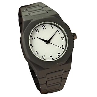 Know More50 gram weight watch MODERN DESIGN: Sleek minimalist watch featuring Arabic numerals on a clean white dial with a contemporary black case and band design