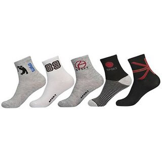 Know MoreThis pair of socks is certainly a must-have . The ergonomic fit offers maximum comfort that will keep you relaxed all day long. Team it up with your casual shoes for a field-ready look. Product Details A pair of quarter, has a ribbed mouth, a flat toe seam with with arch and ankle support, mesh for enhanced ventilation and knitted branding which will catch your attention instantly. Made of wool fabric, these socks will ensure maximum comfort. Offering an amazing fit, these socks will stay soft against your skin. Add variety to the accessory collection with these pack of socks. Made of breathable cotton fabric, these socks are also extremely soft against the skin. These socks are made of stretch cotton, which will keep you at ease all day long. These socks can be paired with casual as well as formal shoes. Pattern : PrintedIdeal For : Men's Number of Contents in Sales Package : Pack of 5 Fabric : CottonType : Ankle Length Socks Socks Style Code : Sports The very royal colours of these socks are Black,Grey which match well with almost everything. Just slip your feet into these highly comfortable socks to keep your feet cool. Made from the best quality cotton, the socks are easily wearable in all seasons, be it summers or winters. Also, they provide the breathable effect so as to keep your feet free from sweat and bad odour.